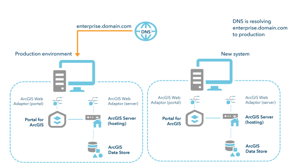 Organizations may want to migrate an existing ArcGIS Enterprise organization from one machine (or set of machines) to another. Among the reasons to do this are to migrate to newer hardware or a newer operating system. There are a few common methods for conducting this type of migration, including: